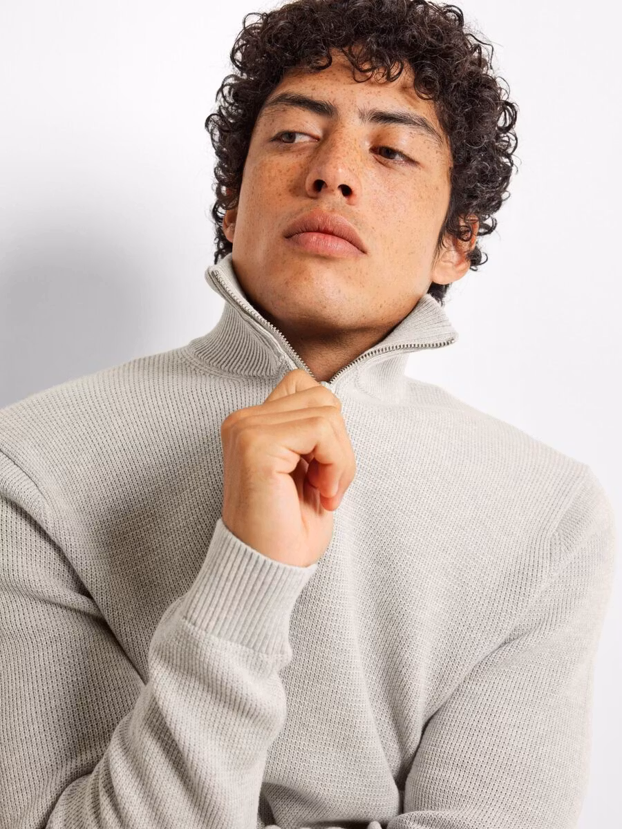 En tröja med halv dragkedja är ett bra sätt att lägga till ytterligare ett lager av isolering samtidigt som den behåller en fräsch och sofistikerad look. Den här är gjord av 100% ekologisk bomull, vilket gör den ventilerande, lätt och extremt slitstark. Bär den över en skjorta med krage och lägg till ett par chinos och mockakängor. - Ribbad hög hals - Halvlångt blixtlås - Långa ärmar - Ribbade manschetter och fåll - Normal passform