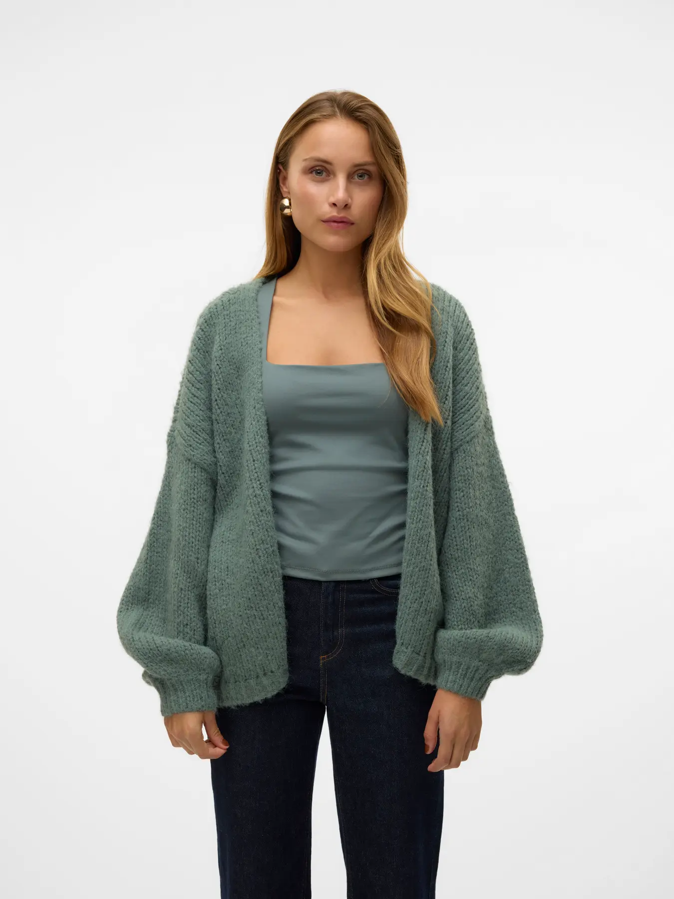 As a cute layer or as a chic, knitted jacket this heavy knitted cardigan is the perfect addition to your wardrobe. An easy and cosy style that keeps you cosy and warm. Wear it as an extra layer to your already smart outfit, or to tone down your dressy look by adding comfort to it. - Product Type : Knitted cardigan - Neck : Round Neck - Sleeve : Long sleeves - Sleeves : Balloon sleeves - Cuffs : Ribbed cuffs - Fit : Oversize Fit
