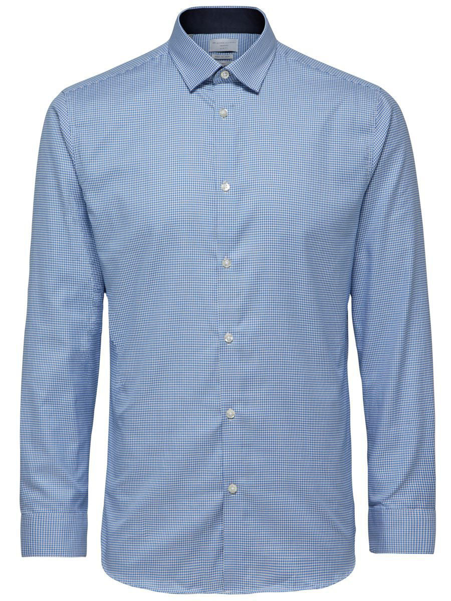 Du kan aldrig misslyckas med en klassisk skjorta. Denna är skuren i en normal passform och har långa ärmar som avslutas med manschetter med knappar. Den är längre än en standardskjorta, vilket gör det extra bekvämt när du stoppar ner den i dina byxor. Den är också gjord av ekologisk bomull, vilket gör den till ett mer miljövänligt val. Vi föreslår att du stylar den med en av våra enkelknäppta kavajer och matchande byxor.