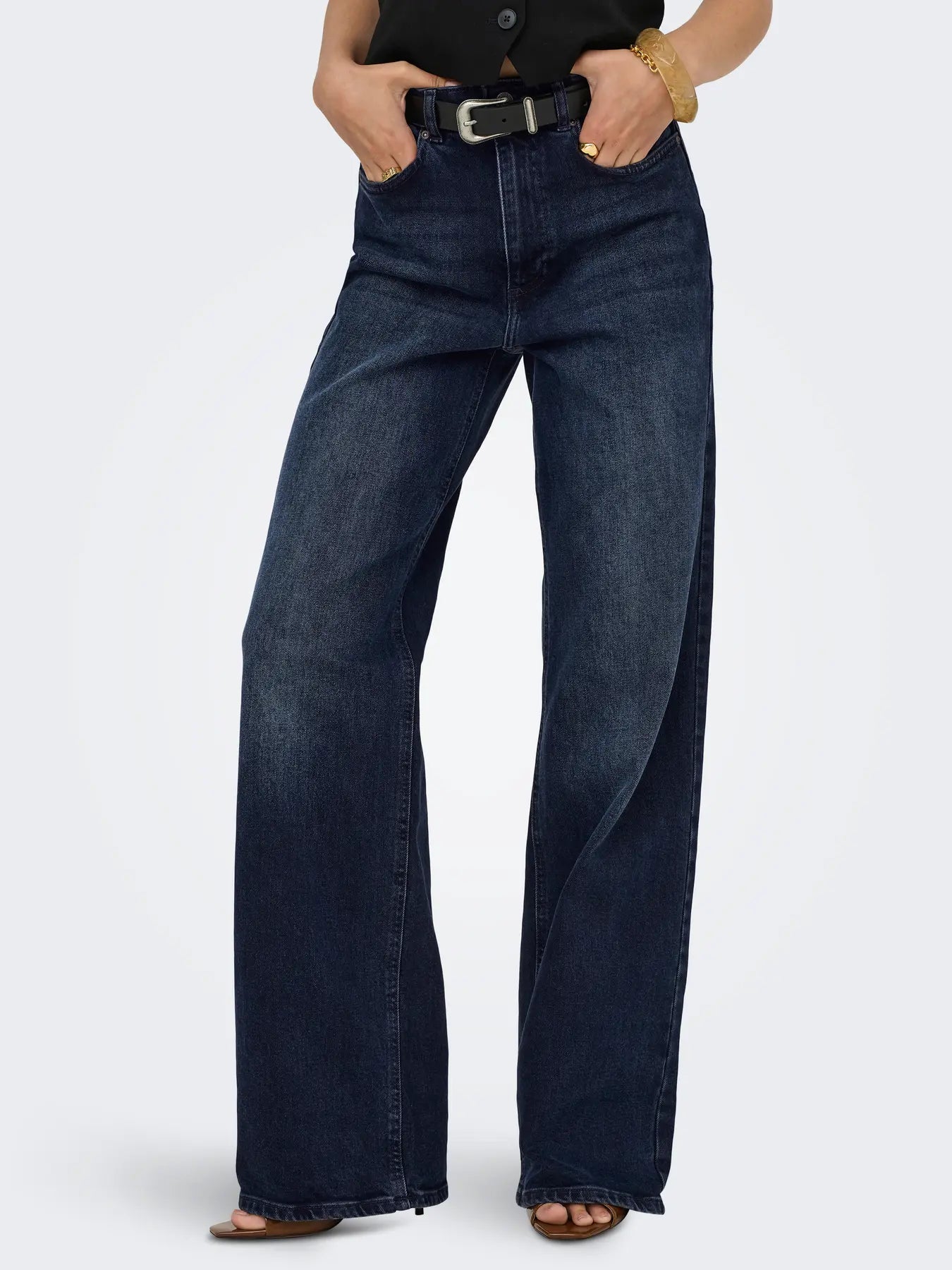 Nothing beats denim - the timeless trend belongs in any wardrobe and looks great with contrasting white items or matched with other denim styles for a fun, stylish look. The stretch cotton denim has added elasticity for extra comfort. - Product Type : Wide-fit jeans - Closing : Button and zip fastening - Pockets : Back pockets, Coin pocket, Front pockets - Waist : High waist - Extra details : Belt loops - Wash/Finish : Gently washed dark denim look - Fit : This wide-leg style are designed with comfort in mind, with plenty of room from hip to ankle
