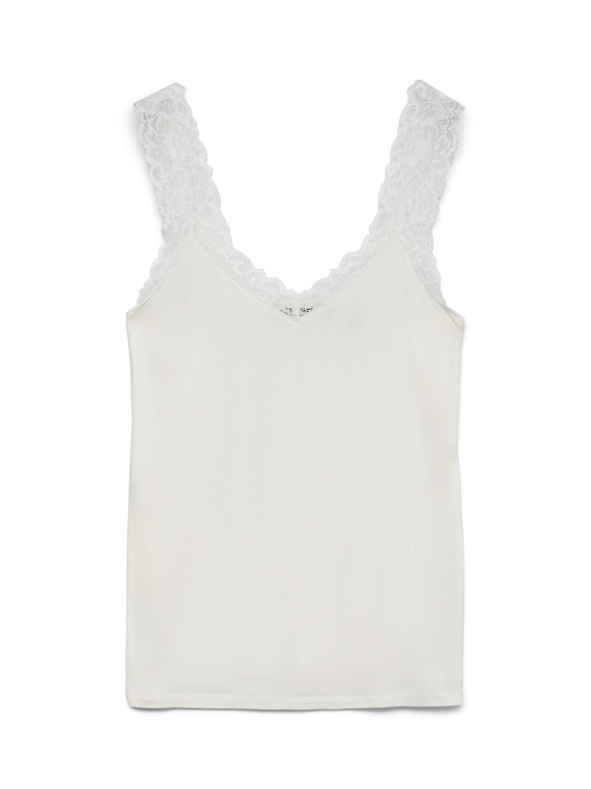 Basplagg hittas oundvikligen i alla garderober där ute. Våra bastoppar hjälper till att sätta ihop en outfit och denna topp är inget undantag. Bär den med en skjortjacka ovanpå, ett par avslappnade mom-jeans och kraftiga kängor, så får du en avslappnad och cool vardagslook. - Produkttyp : Topp - Nacken : O-ringning - Ärm : Ärmlös - Detaljer : Spetsdetalj - Passform : Åtsittande passform