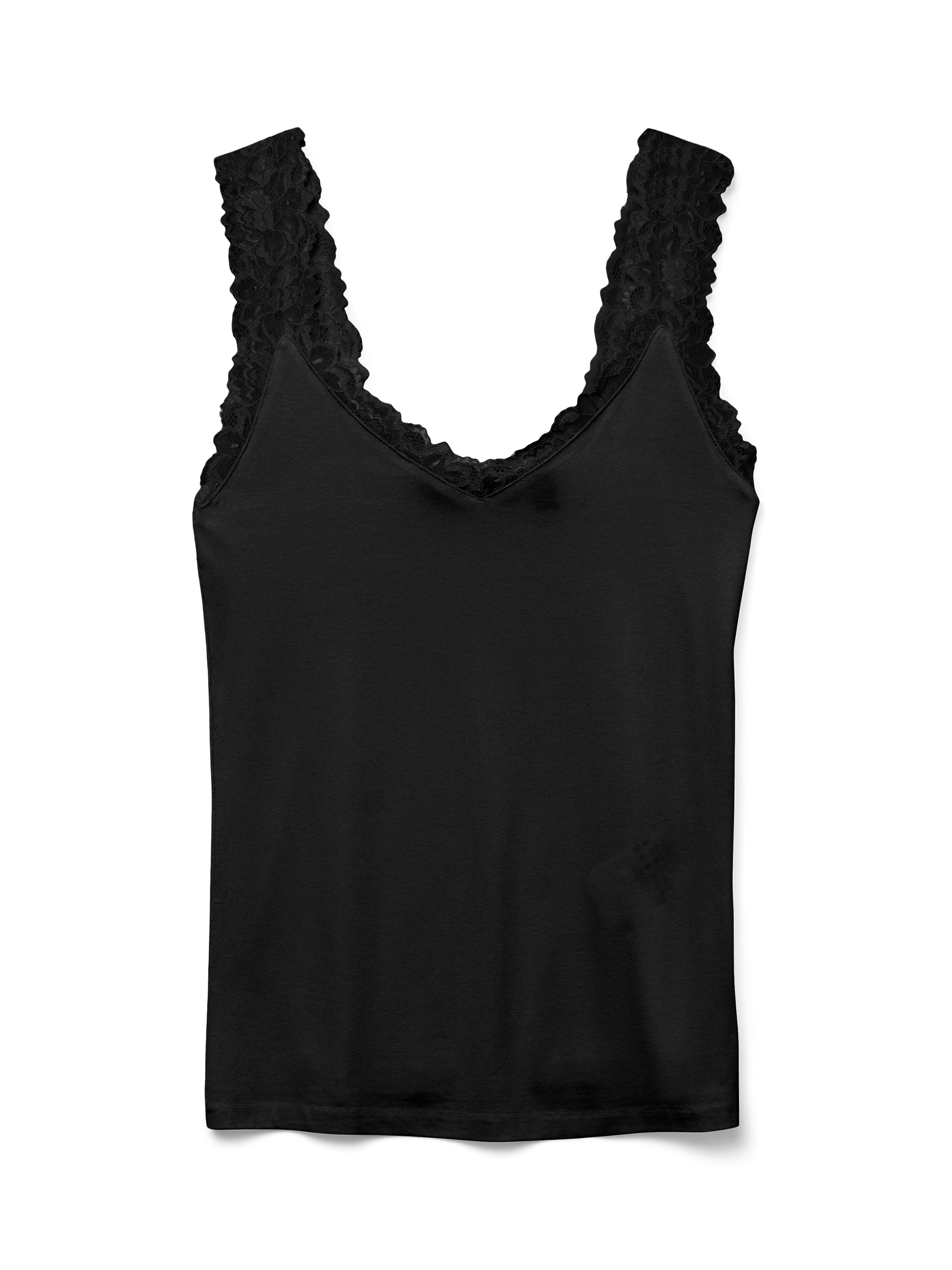 Basplagg hittas oundvikligen i alla garderober där ute. Våra bastoppar hjälper till att sätta ihop en outfit och denna topp är inget undantag. Bär den med en skjortjacka ovanpå, ett par avslappnade mom-jeans och kraftiga kängor, så får du en avslappnad och cool vardagslook. - Produkttyp : Topp - Nacken : O-ringning - Ärm : Ärmlös - Detaljer : Spetsdetalj - Passform : Åtsittande passform